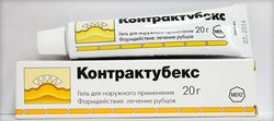| Условия хранения | Гель не теряет своих свойств при температуре 5— 25 градусов. Его нельзя замораживать. | Контрактубекс надо хранить в месте недоступном для детей при температуре не выше 25 градусов. |
