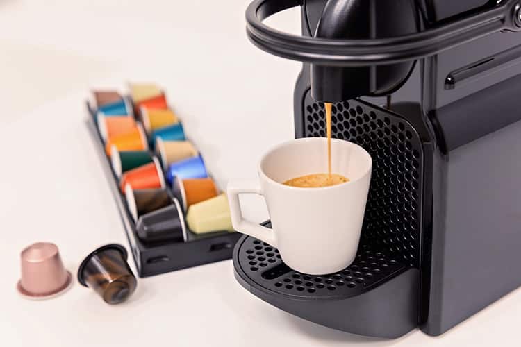 Одна из самых популярных и распространенных моделей. Варка кофе в капсульной кофемашине займет пару минут. Для приготовления нужны специальные капсулы, которые продаются в любом супермаркете.